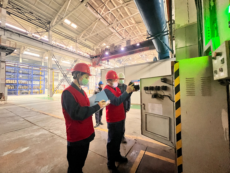 “车间2号配电箱开关测温正常,设备运行无异常。”用电检查工作人员穿梭在该公司高低压配电室、生产车间、储物仓库,利用红外监测设备对厂区配电设备和生产装置开展用电检查。工作人员逐一检查配电设备运行有无异常,生产车间配电柜开关有无隐患等情况,确保生产电力供应安全稳定。