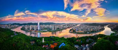 宜宾市主城区的三江口,金沙江与岷江浩荡交汇,自此向东,始称长江。宜宾因此被誉为“万里长江第一城”“长江首城”。这里是长江零公里的起点,孕育了宜宾“因水而生、因水而兴”的城市基因。
