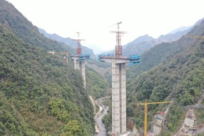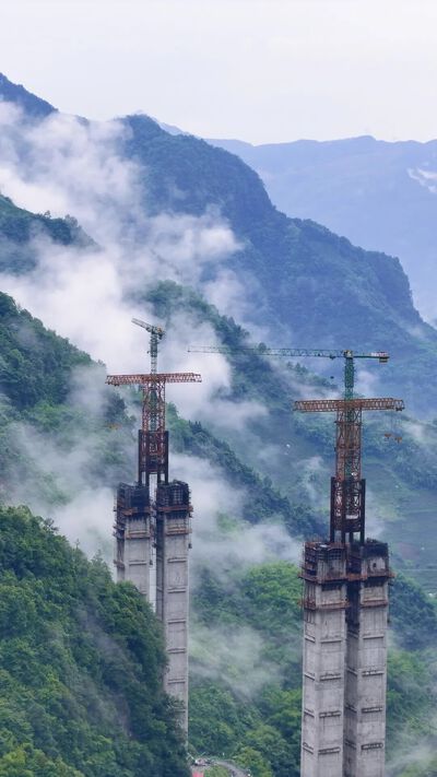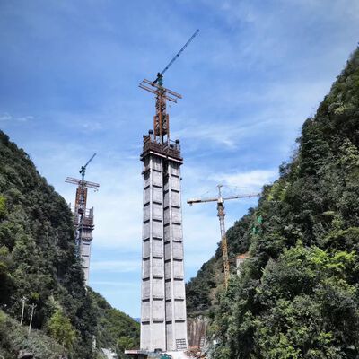 锦屏特大桥位于凉山彝族自治州雷波县双河口乡火烧棚村,地处陡峭河谷地带,全长485米,主桥采用85+160+85米预应力混凝土连续刚构结构,建设过程中,面临地形险峻、气候恶劣、技术复杂等多重困难。为破解施工难题,项目团队自主研发了多功能自爬式提升系统,这一创新技术通过优化支撑、顶升和起重结构,仅配置40米高塔吊即可将重达35吨的钢管组合结构精准吊装至135.2米高空。