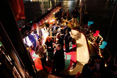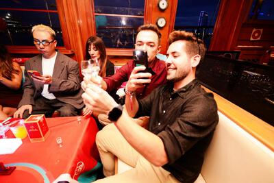 活动现场,维尔港的中式主题游艇被打造成一座流动的艺术空间:桅杆上“和美全球行”彩旗高悬,船舷处五粮液英文标识点亮夜空,后舱甲板化作迷你颠球场,呼应着足球这项巴塞罗那的城市信仰。主舱品鉴中心里,来自东方的浓郁酒香四溢,芬芳扑鼻;二层甲板设为乐队演出区,由巴塞罗那本地知名乐队带来风格多元的音乐演绎。