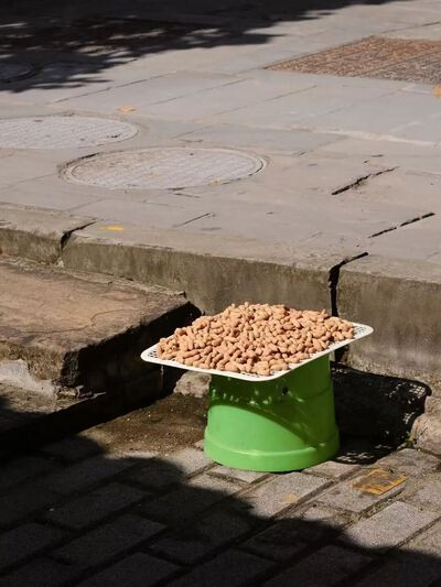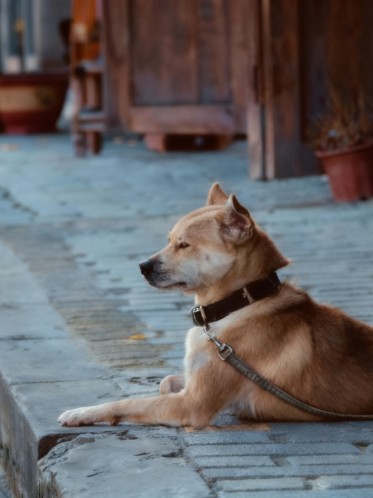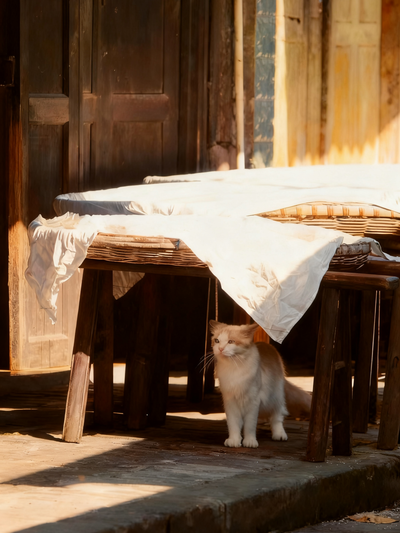 家猫对此总是充满好奇,小心翼翼地在簸箕下探头。而不远处的小狗,却只是在发呆,静静趴在门口,好像一只限量版的手办。