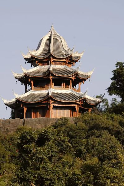 不经意抬头,楼阁的飞檐被绿树环抱,每一处建筑间隙,都是天然形成的画框,让人忍不住停下来,给这秋天多拍几张照片、留下几句诗意的心情。