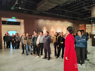 旅行团首站抵达五粮液产业园区,大家漫步东大门、打卡鹏程广场、探访酒文化博物馆,沉浸式感受“大国浓香,和美五粮”的底蕴,浓郁酒香与生产场景无不让大家直观感受到了“中国酒都”雄厚的产业实力。“这是我第一次走进五粮液,逛厂区、品佳酿,亲眼见证家乡酒企的底蕴与风采,作为宜宾人特别自豪!”来自江安县夕佳山镇五里村村民李晓波笑着说道。