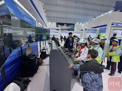 游船模型旁,主办方设置的船舶驾驶模拟训练器,也吸引了不少前来研学游的中小学生。“该船正在长江航道进行航线测试,航点覆盖合江门、李庄古镇等,预计年内投入载客试运营。”“宜宾文旅”号运营方、宜宾文旅会展集团相关负责人说。