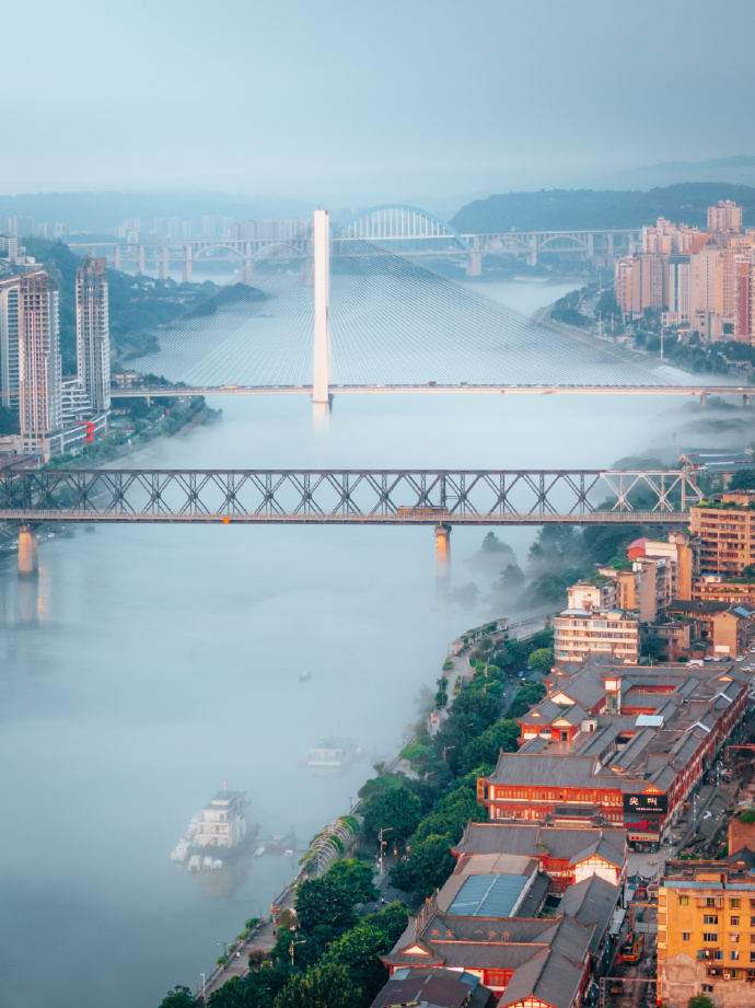 晨光初透,江雾未散。三江水在冬日里泛起了淡淡的烟青色,这是独属于江之头的晨曦。宜宾——这座被水环抱、被酒香浸润的城市,在十二月的昼与夜里,正缓缓铺开一幅温暖而诚挚的画卷。这并非骤然的欢腾,而是一场绵长而细腻的迎接。是以整座城的温度,为所有归乡之人、远道之客写下的柔软序章。