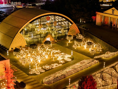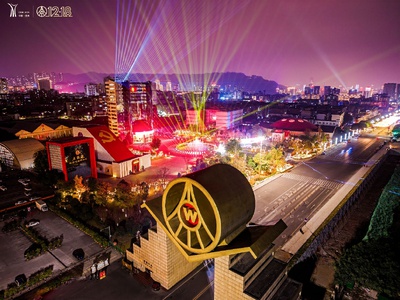 东大门静立如时光的见证者,门前的灯光天幕如星河铺展,引领人们走向温暖的深处。行政楼前草坪上的艺术装置,酒史馆门前的流转光影,安乐泉边闪烁的霓虹,皆在庄重中透出亲切——那是唯有家园才有的妥帖与诚意。