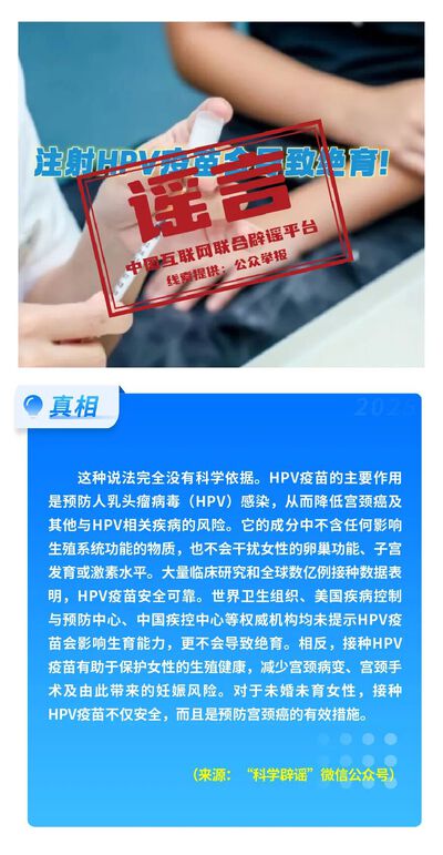 注射HPV疫苗会导致绝育