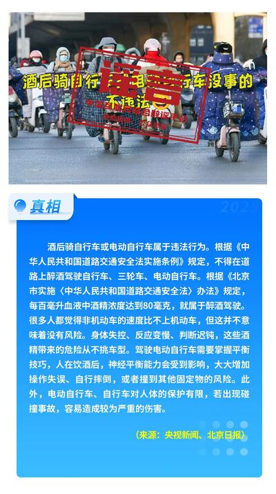 酒后骑自行车或电动自行车不违法
